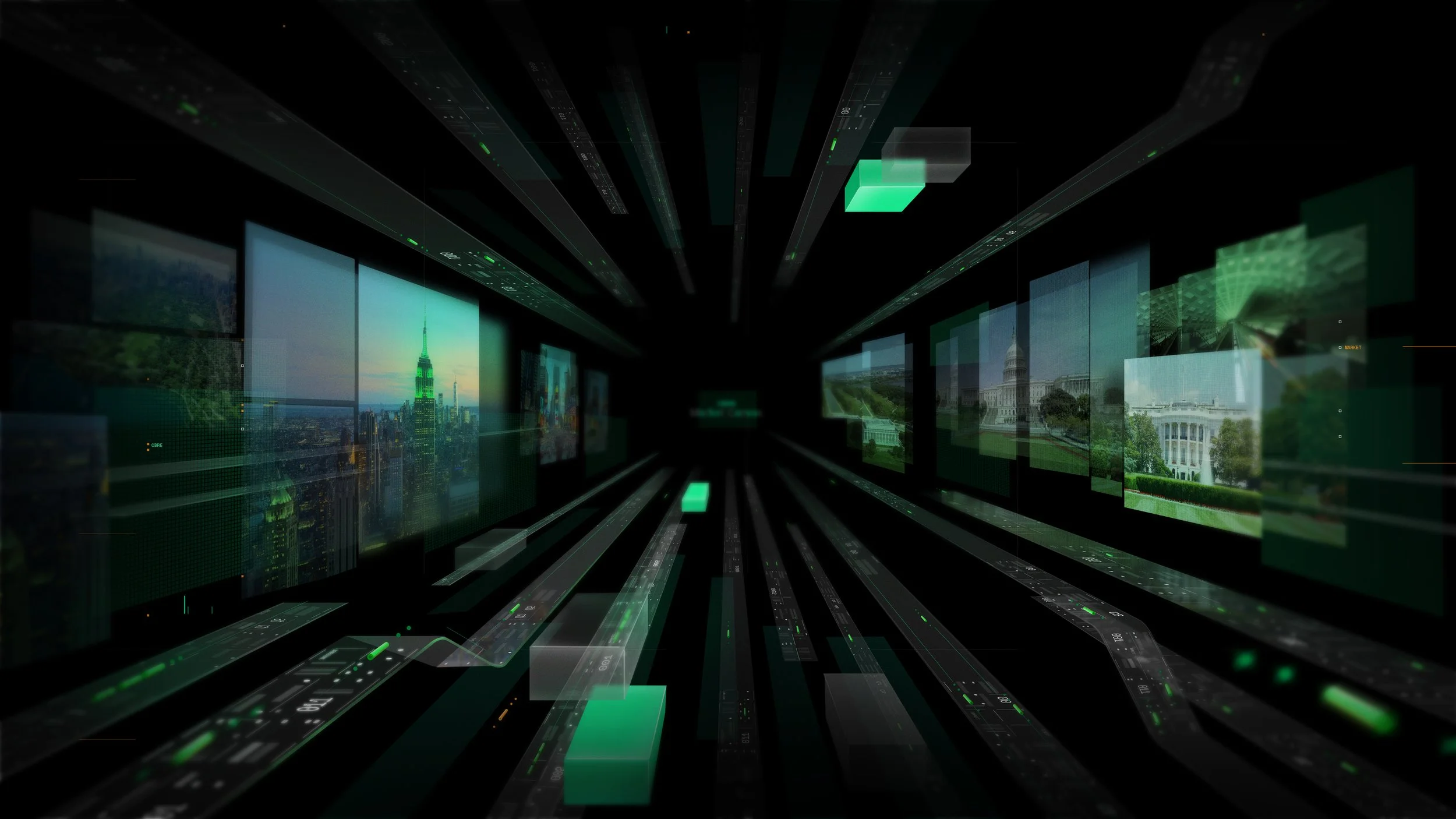 I collaborated with BAM! Studio on an animation project for CBRE, leading the visual design and look development. I explored the concept of a data tunnel, creating visuals that guide the viewer through the flow of information and resolve in the CBRE logo.
